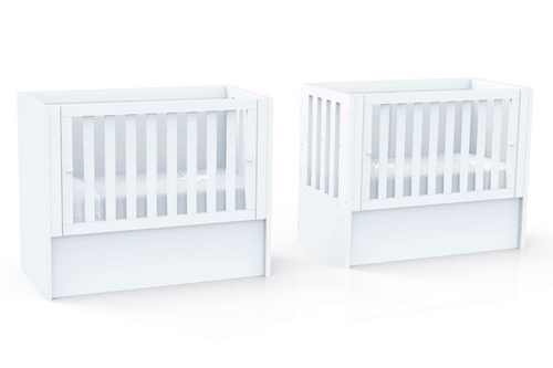 Podrás tener a tus dos angelitos juntos en la misma cuna, pero con espacios separados para cada uno. Está compuesta por 2 cunas de 60×120 cm separadas mediante un tablero con ranuras abiertas, para que los bebés estén siempre en contacto. Las dos cunas cuentan con un sistema sube y baja en las barandillas, para facilitar el acceso de los padres al interior de las camitas.